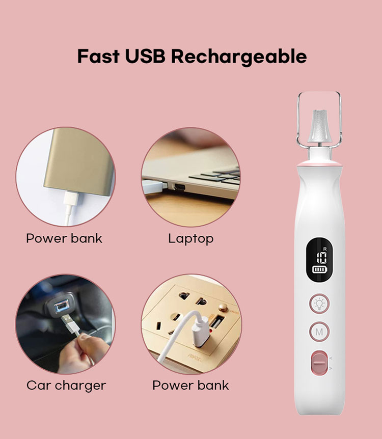 4:Rechargeable and Cordless: The cordless nail drill is equipped with battery powered, providing great portability and more than 6 Hours on a full charge cordless operation. And if you need more time, you can even use it while it's charging