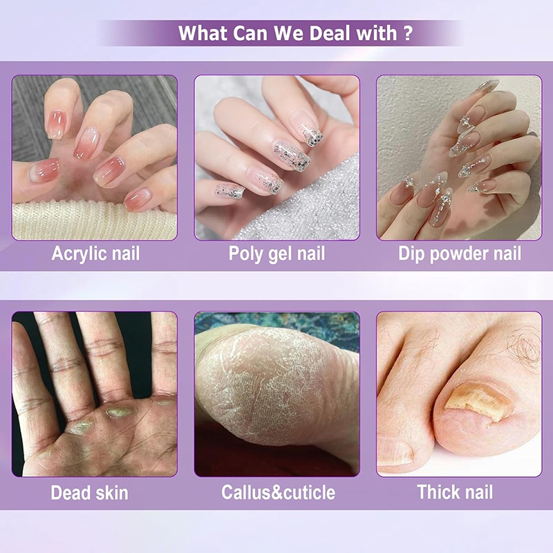 Elektrisk spikerboremaskin Oppgradert kraftig motor er perfekt for alle dine manikyr- og pedikyrbehov, inkludert fjerning av akrylnegler, polygelnegler, billergel, dip-pulvernegler, neglebånd, død hud, hard hud og tykke negler.