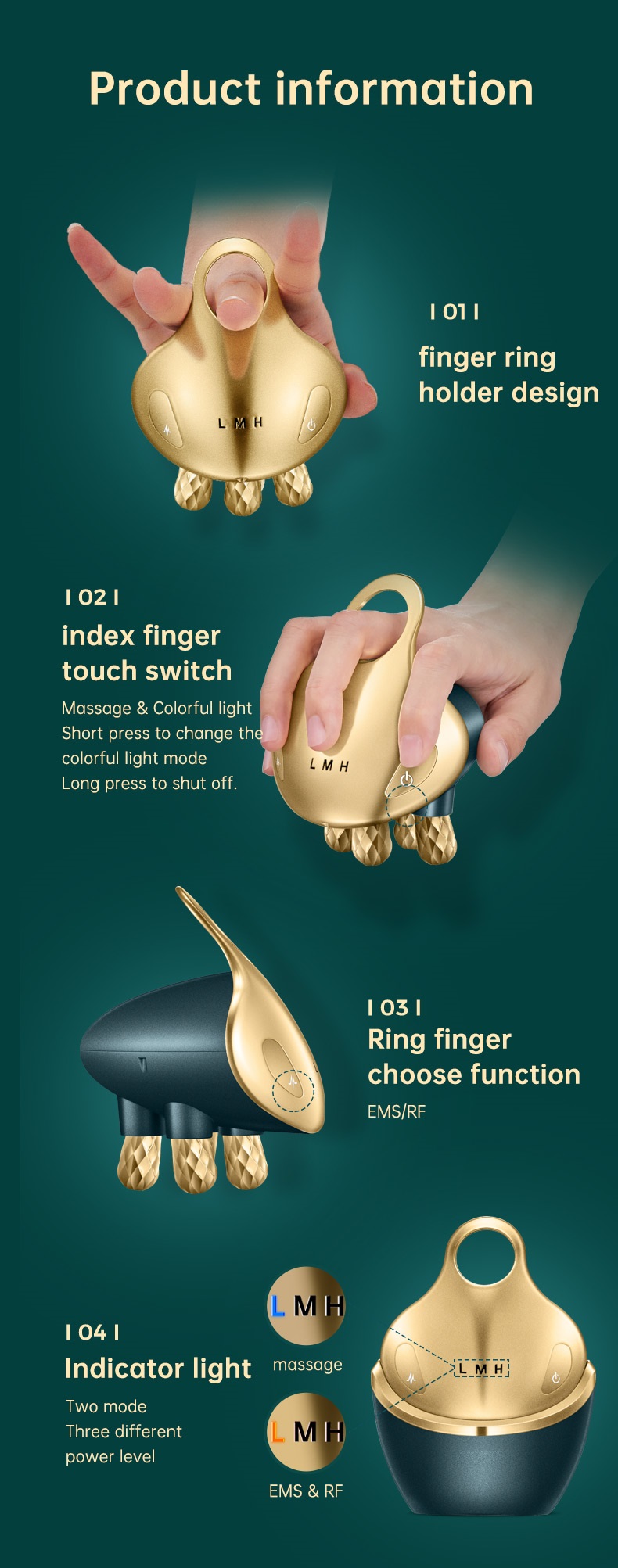 2. Massasje+EMS+RF multifunksjonell, 3 hastigheter og intensitet justerbar