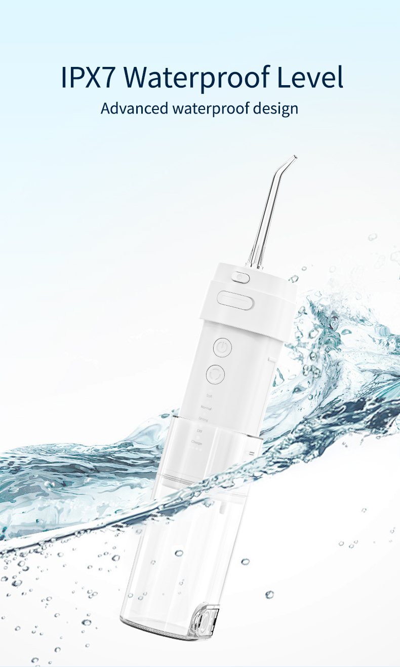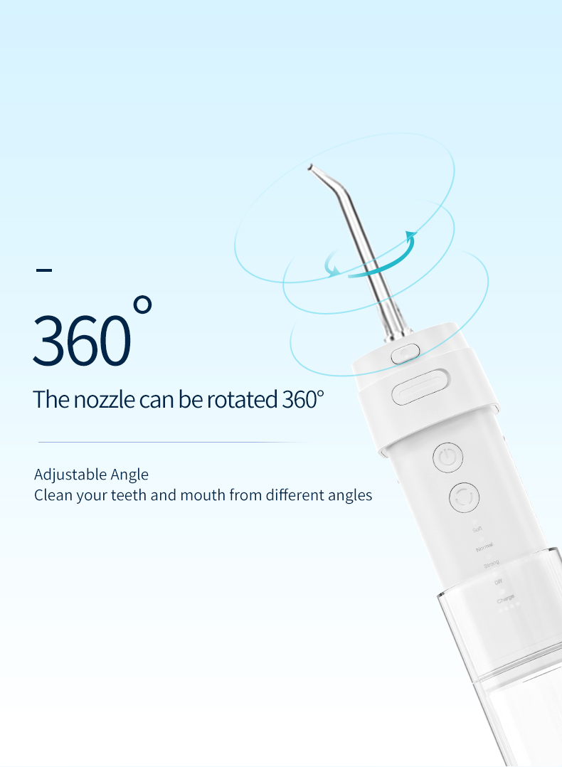 Dyprengjøring med sterkt trykk: Vanntråden tar i bruk den nyeste pulsteknikken for å tilby 4 moduser med et trykkområde mellom 30-90 Psi og pulsfrekvens på 1400-1800 ganger/minutt, for å tilby høyintensitetsvann som renser bort 99,99% av tenner, spesielt utviklet for periodontitt, tannregulering.