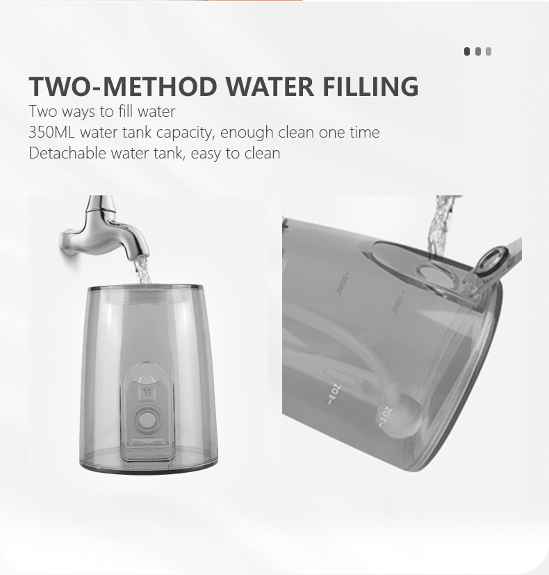 Denne vanntanntråden har en oppgradert vanntank på 350 ml, dobbelt så stor kapasitet som andre gamle modeller, noe som eliminerer behovet for hyppig etterfylling og gjør munnrengjøringen mer praktisk og effektiv