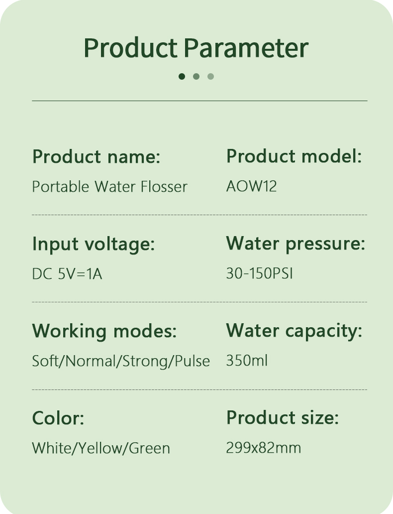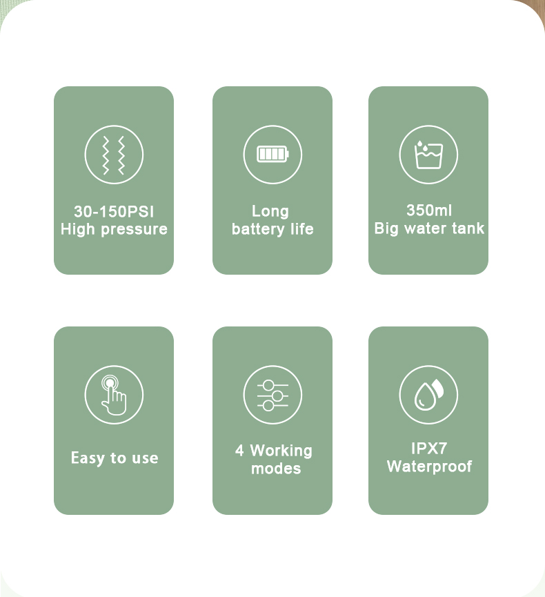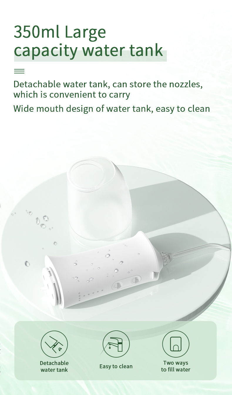 Denne vanntanntråden har en oppgradert vanntank på 350 ml, dobbelt så stor kapasitet som andre gamle modeller, noe som eliminerer behovet for hyppig etterfylling og gjør munnrengjøringen mer praktisk og effektiv