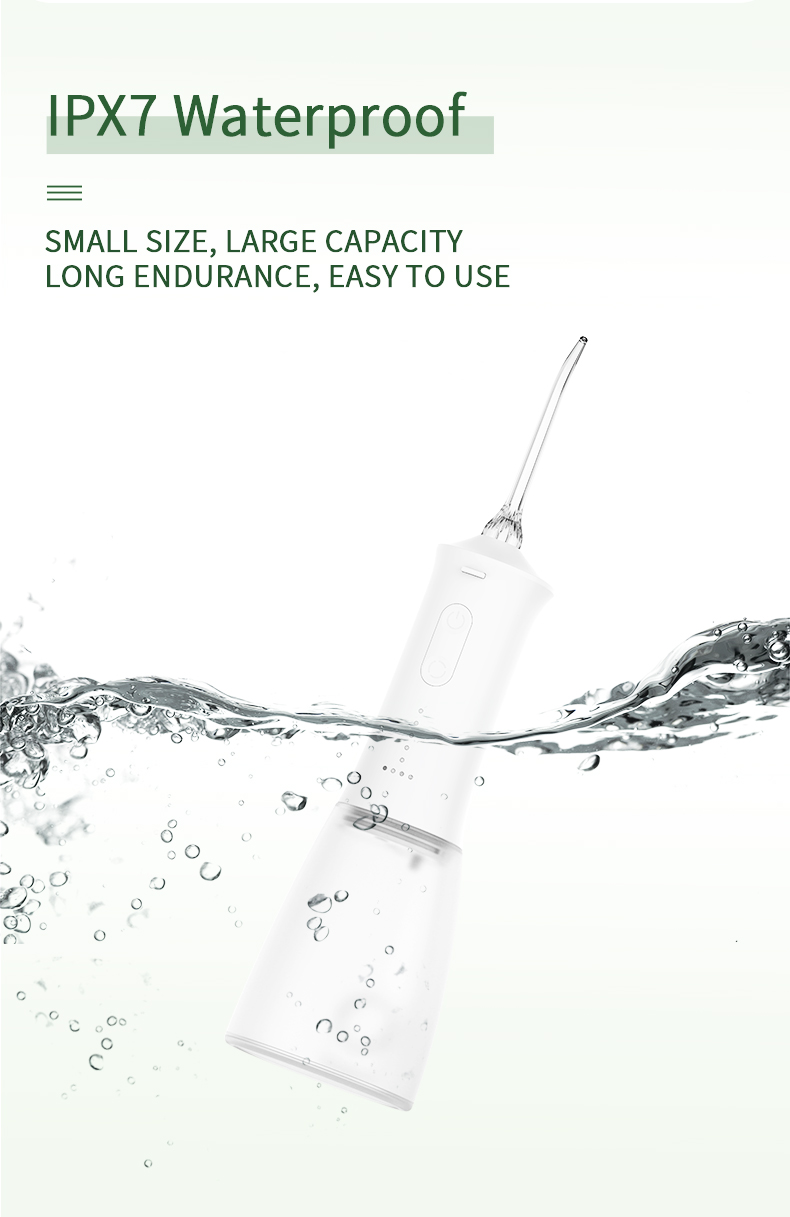 Vår trådløse vanntannplukk har overlegen vanntetting, noe som tillater enkel rengjøring og sikker bruk under dusjer.